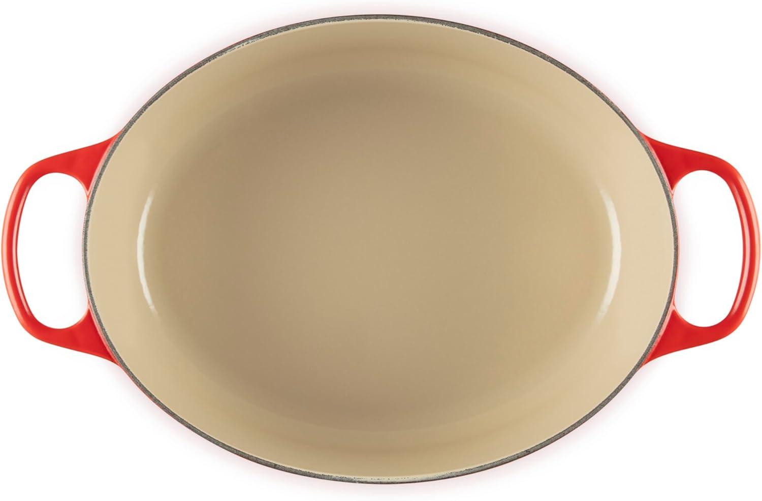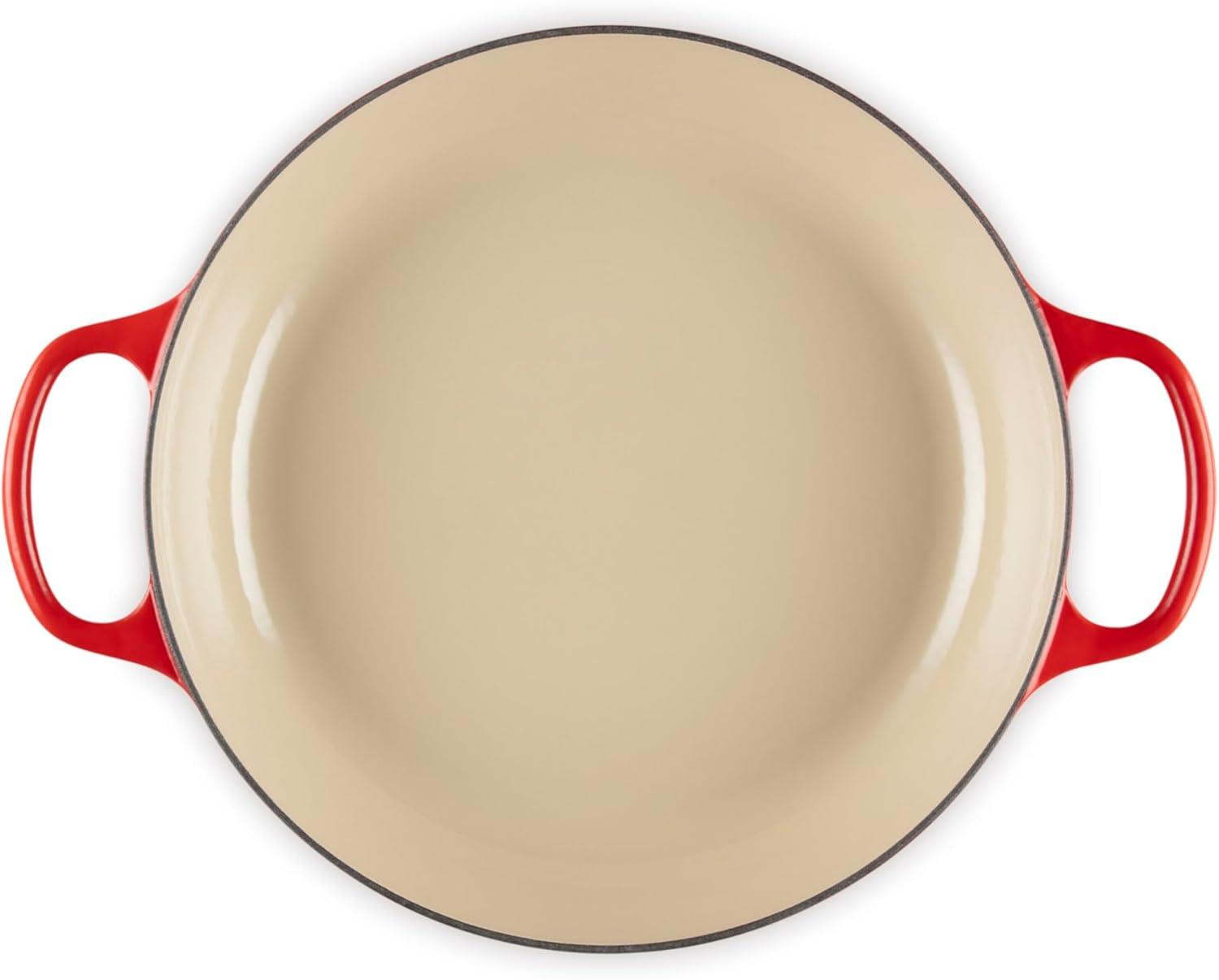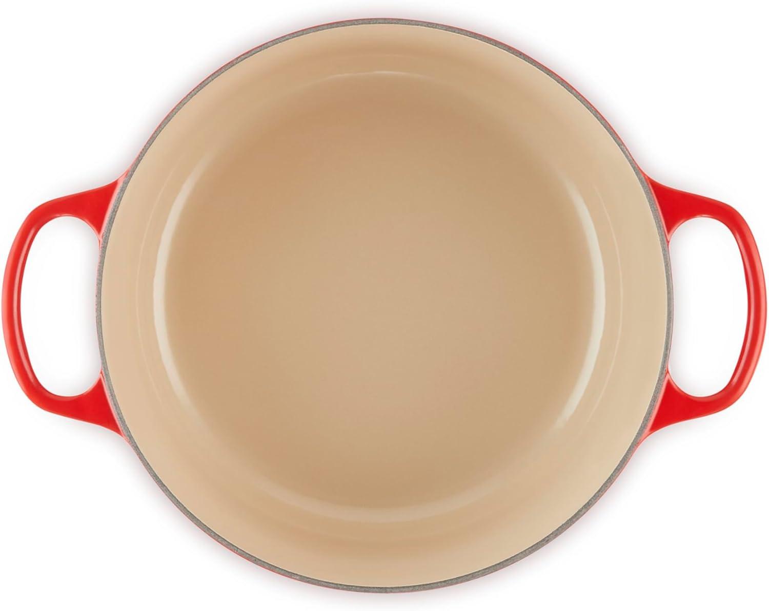 Easy-to-clean and durable enamel resists dulling, staining, chipping and cracking; Light colored smooth interior enamel allows easy monitoring of cooking progress
