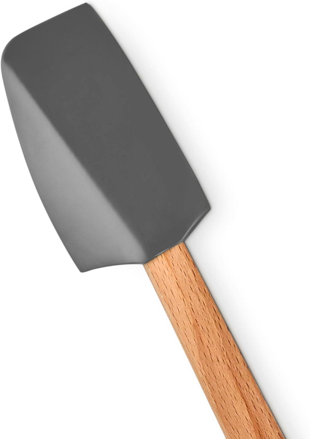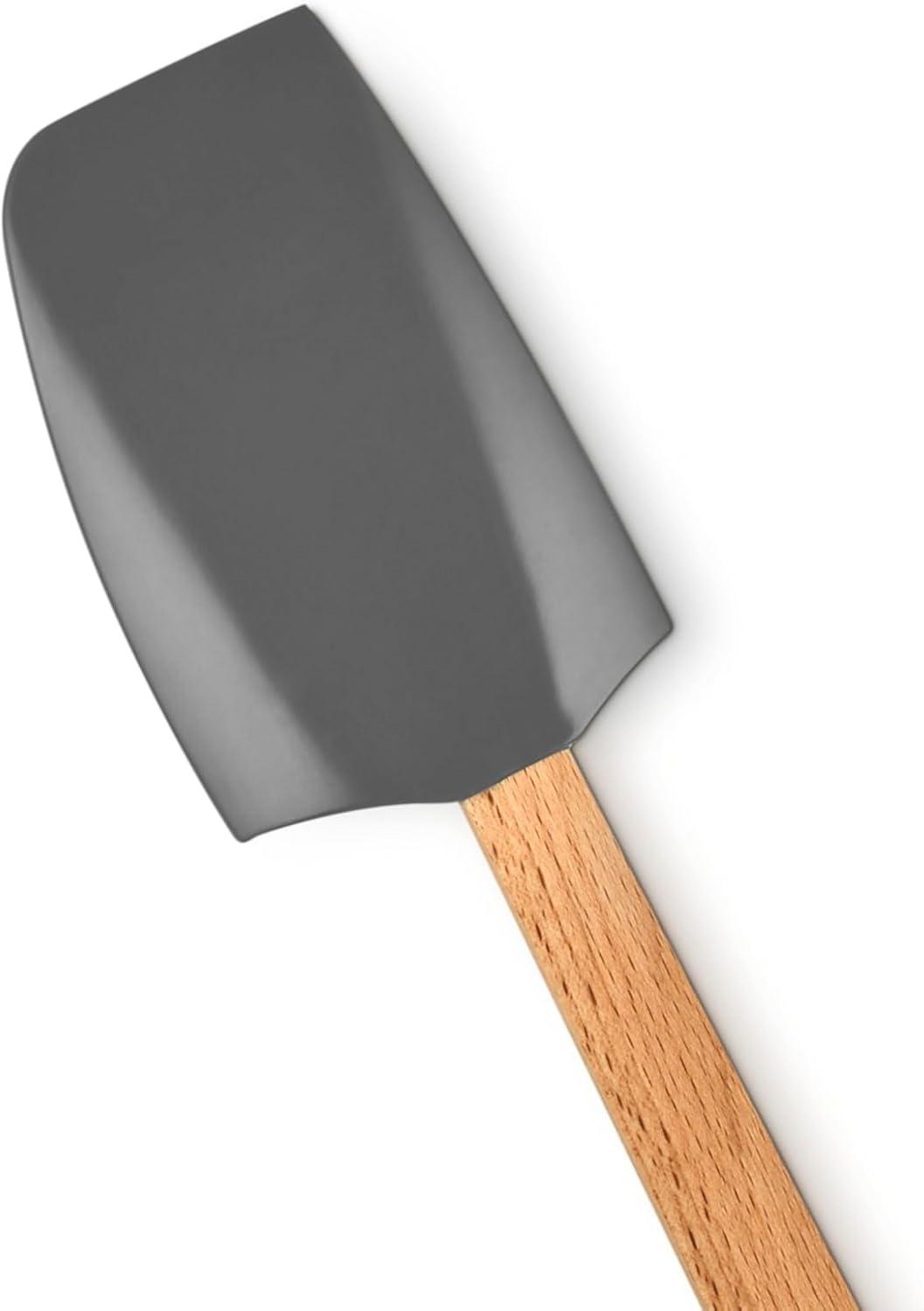 Ergonomic, FSC-certified beech wood handles with flat edges are designed to seamlessly rest on a spoon rest or Dutch Oven handle for optimal kitchen functionality